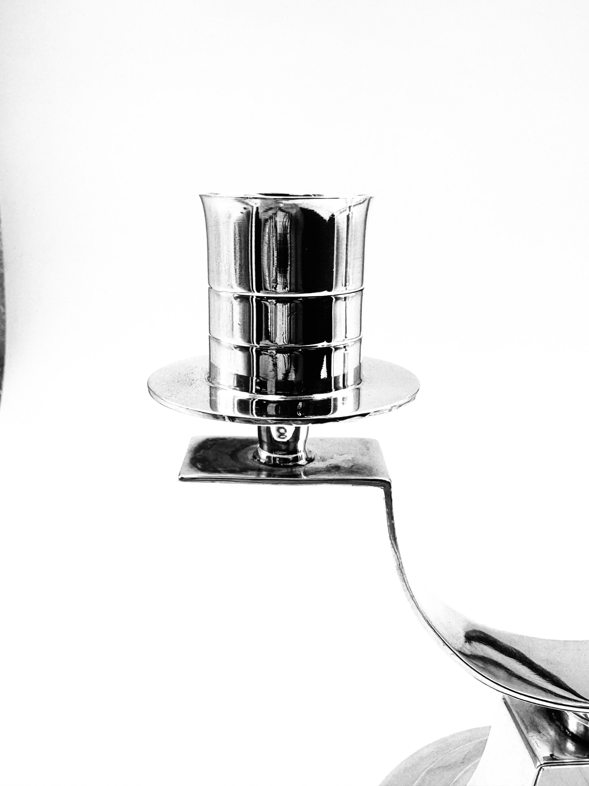 一对装饰艺术风格的纯银烛台,由阿迪兄弟公司制造,带有 1947 年伯明翰印记。它们高 13.5 厘米,共重 552.6 克。